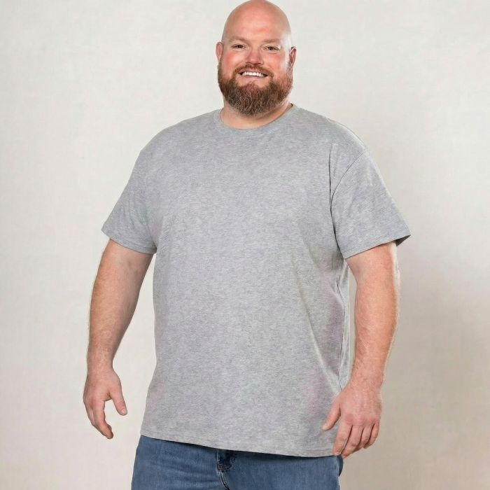 Het Alca Easy‑Going O‑Neck T‑shirt biedt een revolutionaire pasvorm voor mannen met een buikmaat van 2XL tot 8XL. Dankzij de elastische katoen-stretch mix sluit het shirt perfect aan bij schouders, borst én buik, zonder wijd of slordig te zitten.